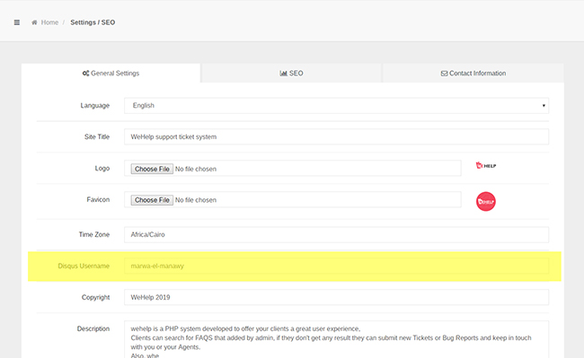You need to run this query: INSERT INTO `settings` (`key`, `value`) VALUES ('disqus_username', 'username');